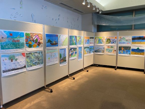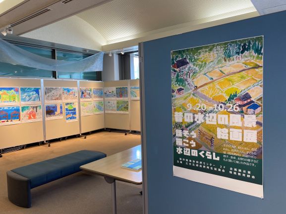 子どもたちが、おじいさんやおばあさん、近所の人などから、子どもの頃の三方五湖や川、当時の食卓や祭の様子などの話を聞いて描いた「昔の水辺の風景画」の展示を行います。